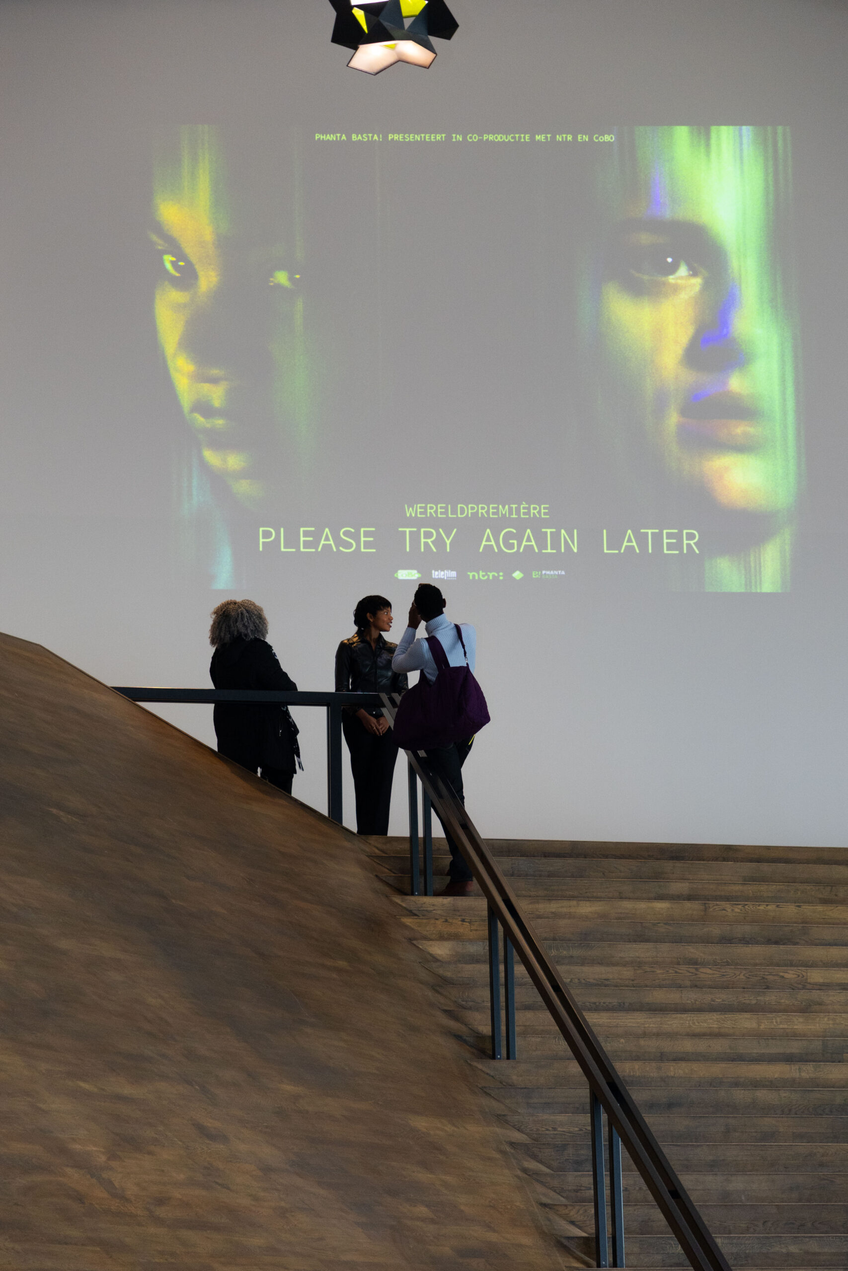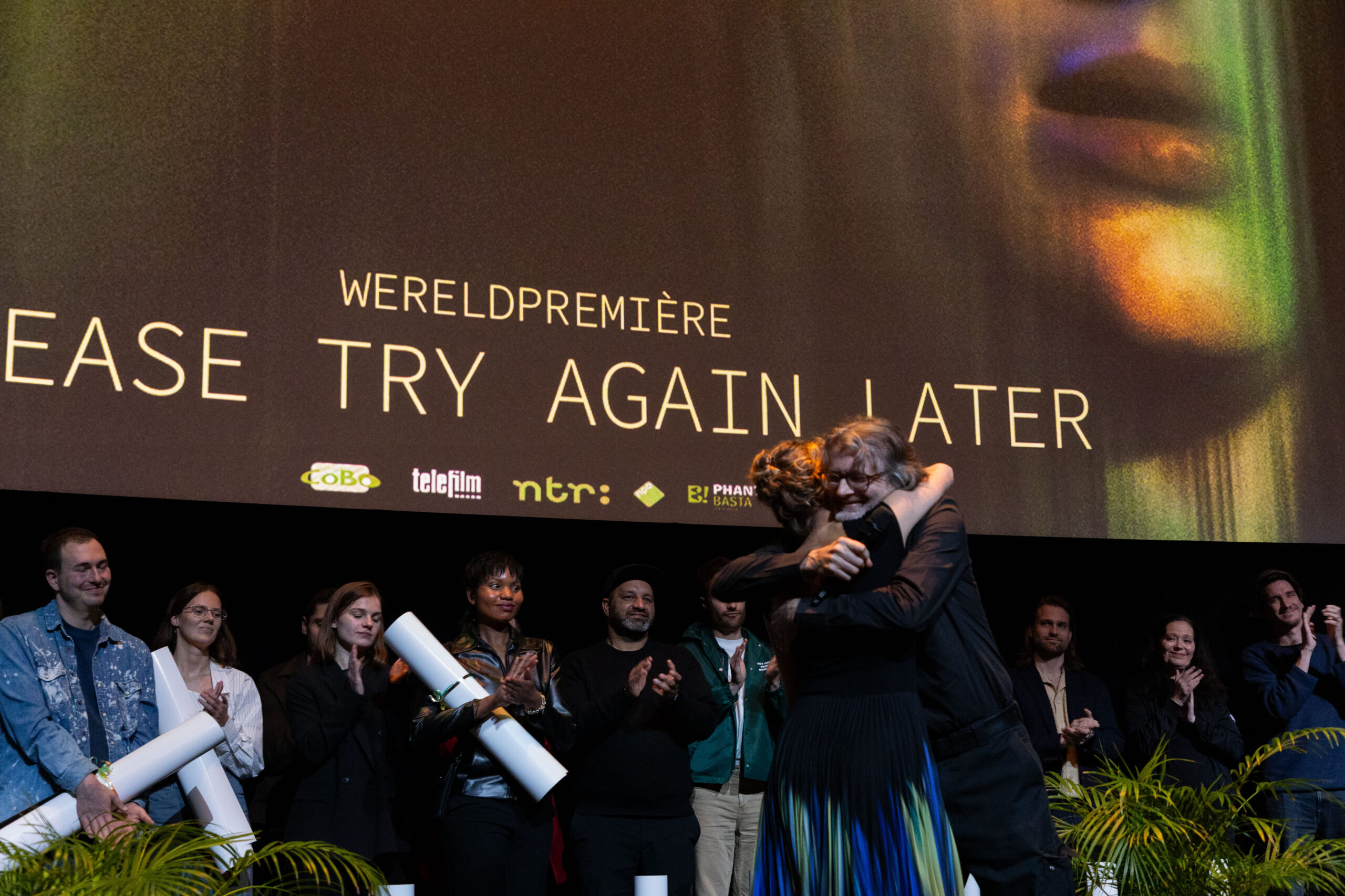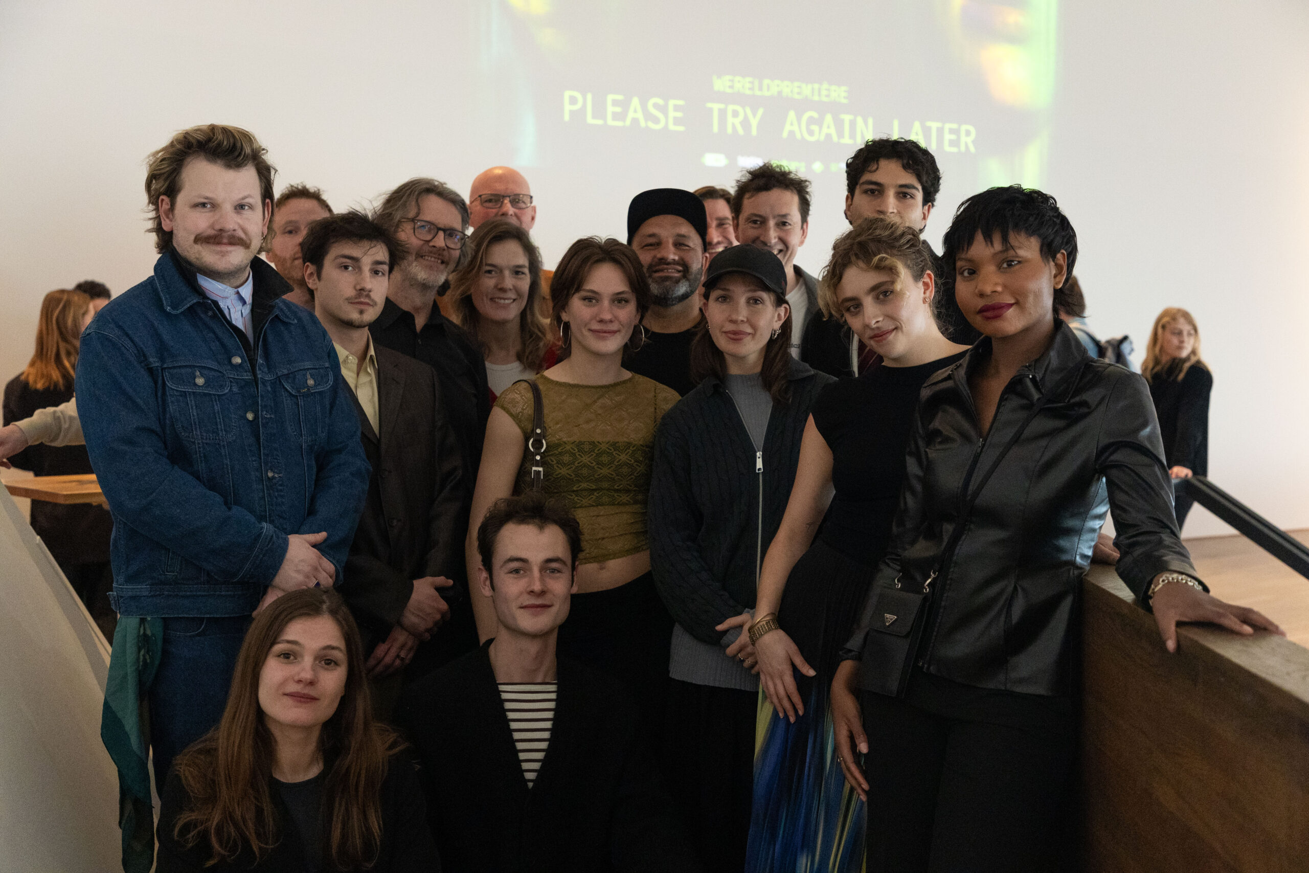 Please Try Again Later ging in première in het Eye Filmmuseum, waar cast, crew en genodigden samenkwamen om de film voor het eerst op het grote scherm te zien.